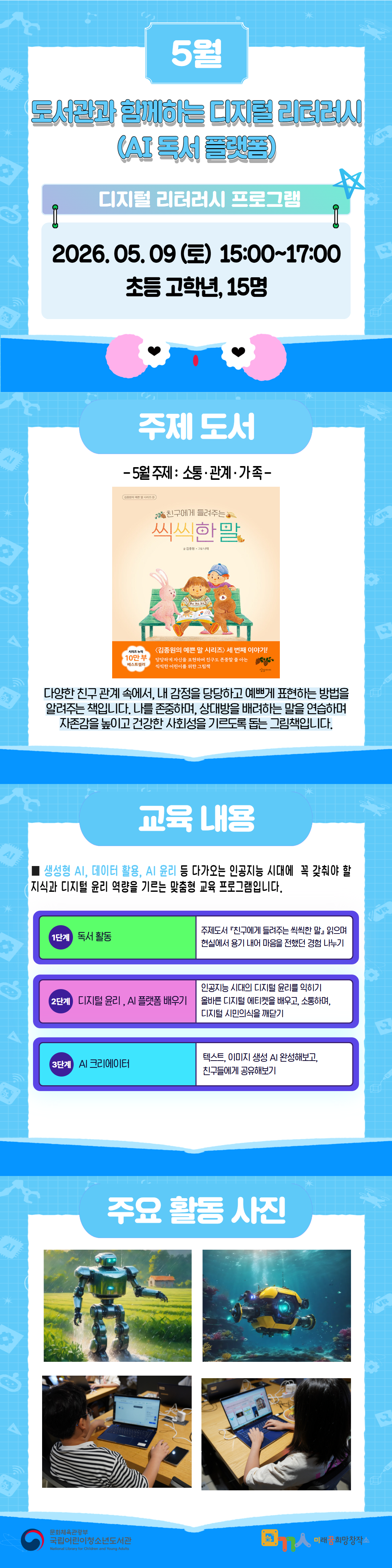 접수예정 [미꿈소 프로그램]도서관과 함께하는 디지털 리터러시 (AI 독서 플랫폼)