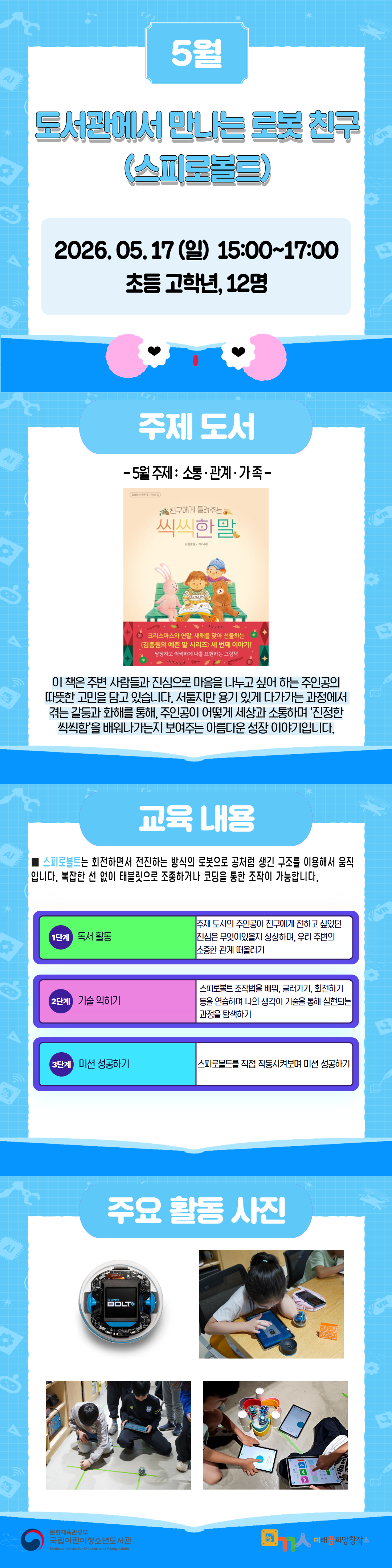 접수예정 [미꿈소 프로그램]도서관에서 만나는 로봇 친구 (스피로볼트)