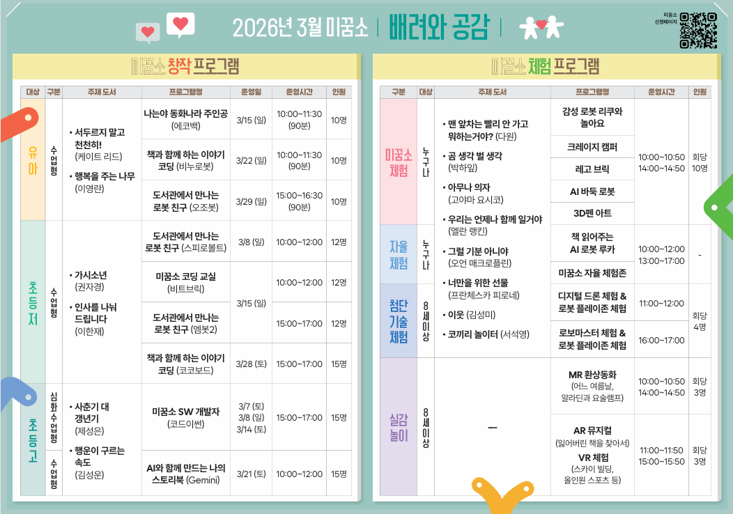 2026년 3월 미꿈소 프로그램 안내