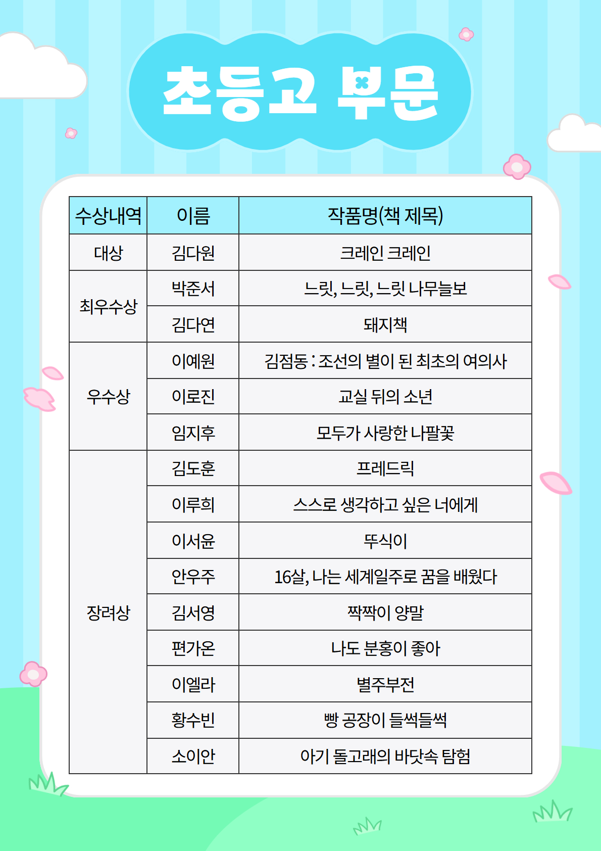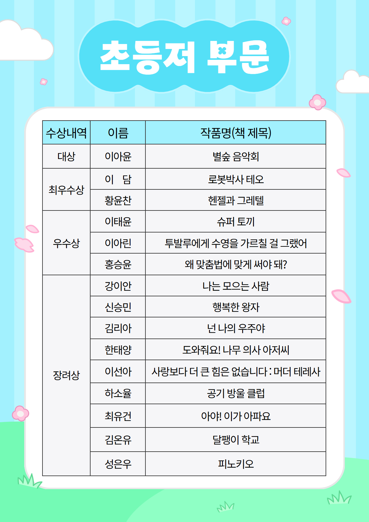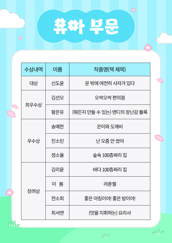 공모전에 참여해주신 모든 어린이 여러분께 감사드리며, 수상한 어린이들에게 축하의 인사를 전합니다.