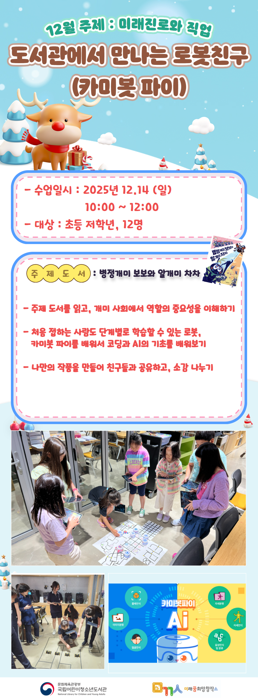 접수마감 [정규프로그램][오프라인] 도서관에서 만나는 로봇 친구 (카미봇 파이)