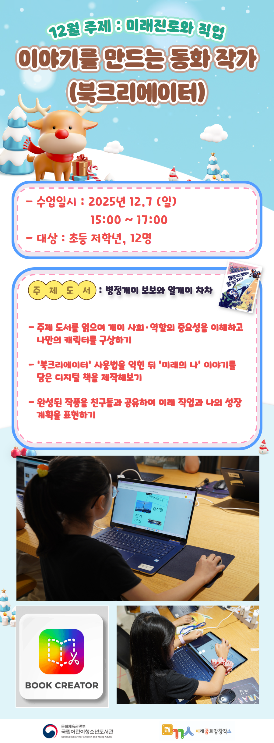 10. 프로그램 참여 모습은 도서관 홍보(비영리목적)를 위해 촬영 및 활용 될 수 있으며, 결과물에 대한 저작권은 국립어린이청소년도서관에 귀속됩니다.