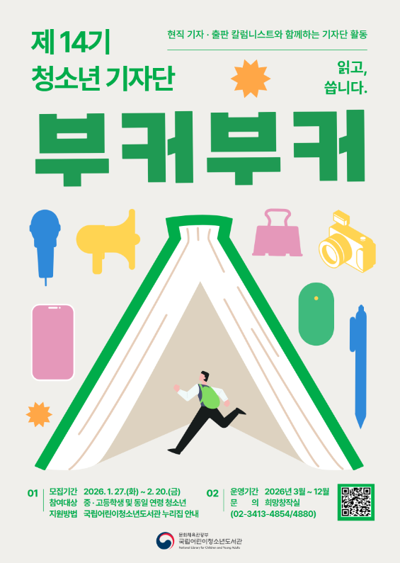 2026년 국립어린이청소년도서관 청소년 기자단 <부커부커> 참여자 명단을 <붙임>과 같이 알려드립니다.